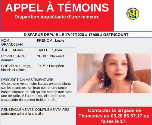 APPEL À TÉMOINS DISPARITION DE MINEURE À OSTRICOURT