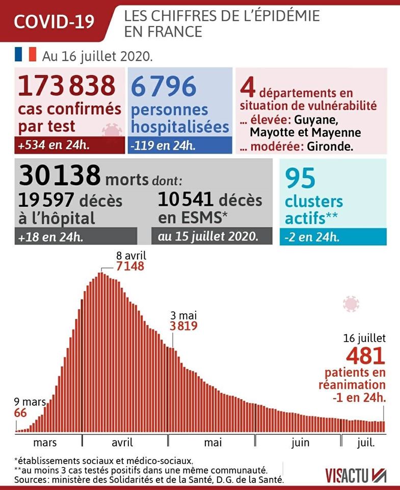#Coronavirus. Les chiffres de l'épidémie en France au 16 juillet 2020.