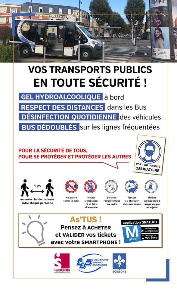 Dans cette période particulière, les Transports Urbains Soissonnais s'adaptent pour vous permettre de vous déplacer en toute sécurité.