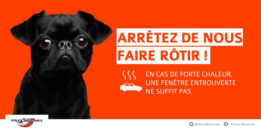 [TOUS MOBILISÉS] Laisser son animal enfermé en plein soleil dans un véhicule est un mauvais traitement et une infraction. Si vous en êtes témoin, appelez immédiatement les secours en composant le 17 ou le 112. https://www.police-nationale.interieur.gouv.fr/…/Chaleur-pr…