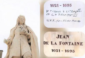 Un ou des petits malins n'ont pas trouvé d'autre occupation que de taguer le pied de la stèle où sont indiquées les années de naissance et de disparition du fabuliste.
