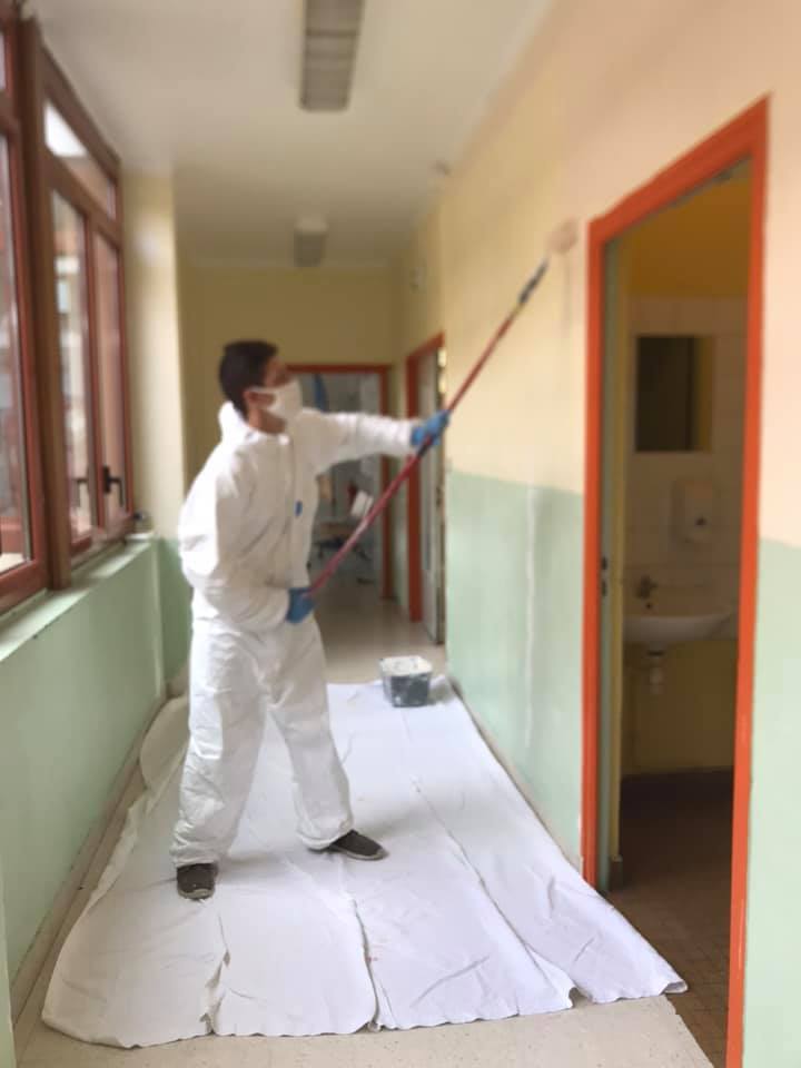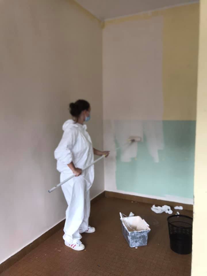2ème jour de travail pour nos jeunes, réfection en peinture de la salle location du centre social de Presles et cela dans le respect des gestes sanitaires.