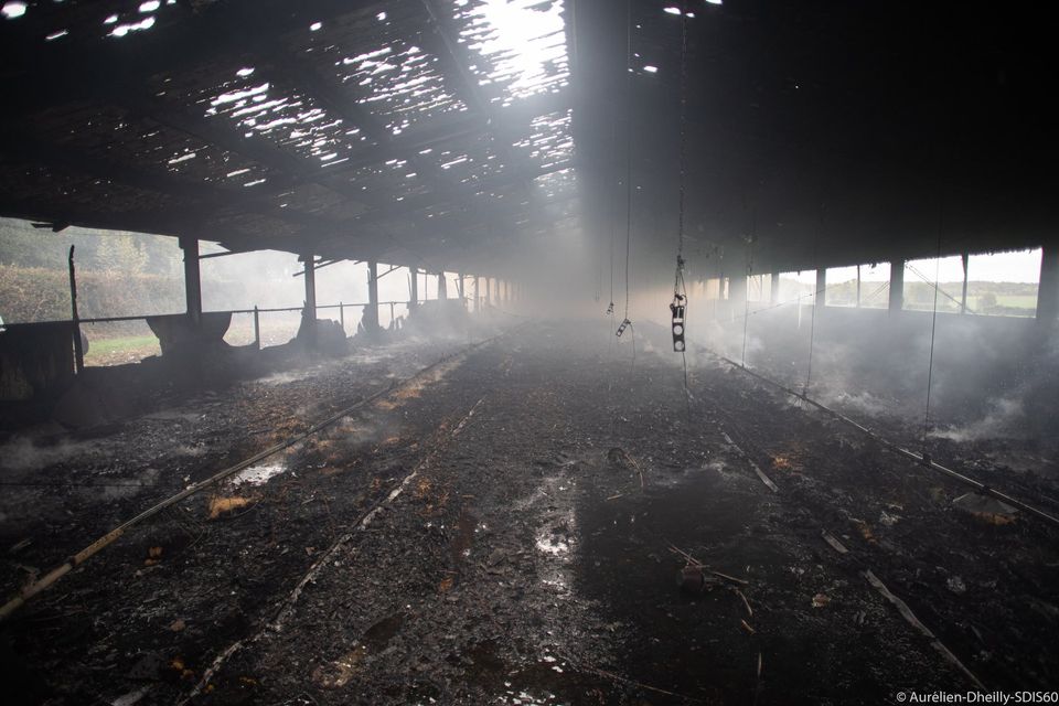 1200 m2 de bâtiment d’élevage en feu à Sarcus, une victime en urgence absolue.