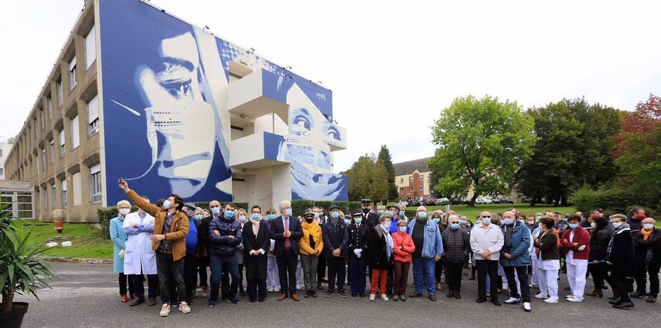 Mercredi, les gendarmes d’Hirson ont participé à l'inauguration d'une fresque en l'hommage des soignants de l'hôpital d'Hirson.