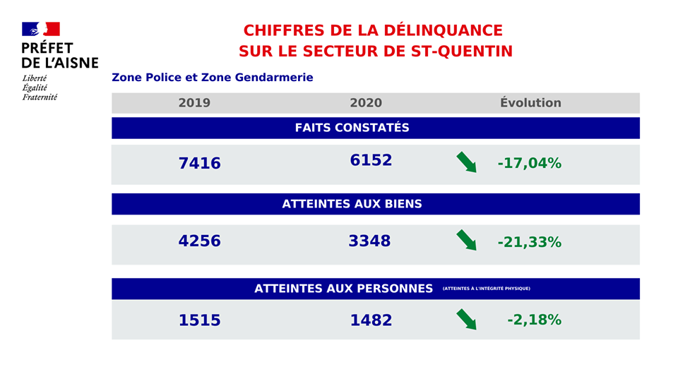 Baisse sensible de la délinquance constatée en 2020 dans le Saint-Quentinois. Une année particulière mais également un fort engagement de la #police et de la #gendarmerie