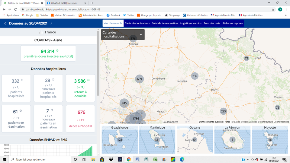 Situation Covid-19 dans le département de l'Aisne au 20 avril 2021