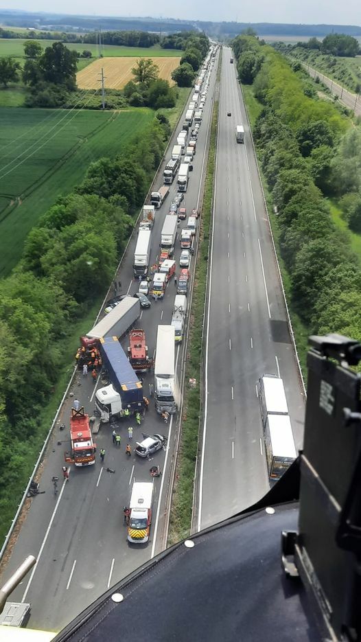 Carambolage sur l'autoroute A1. 3 poids lourds et 2 voitures impliqués.