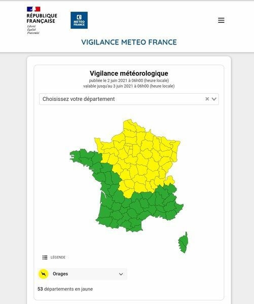 Les départements de l Aisne L Oise et de la Marne sont en Vigilance jaune orage