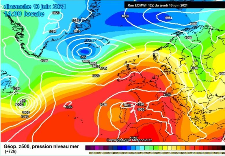 Carte du modèle Européen (CEP) proposant dimanche 13 juin.