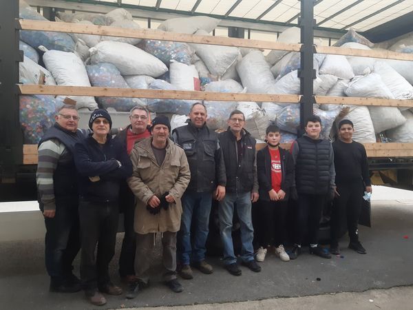 Sur la première la photo, les bénévoles de Charly Sur Marne qui ont chargé hier le semi remorque de bouchons en plastique à destination de notre centre de tri de Bouchonsd'amour Moy de l'Aisne environ 6 tonnes collectées par notre responsable sur le secteur de Charly Sur Marne , Mr Crapart Yann . Sur la seconde photo, les bénévoles de Moy de l'Aisne qui ont procédé au déchargement des bouchons