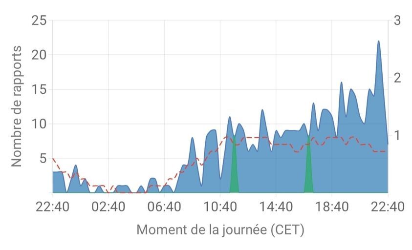 Il y a aussi un nombre de rapports assez élevés chez FREE et ORANGE dans certains secteurs de l'Oise.