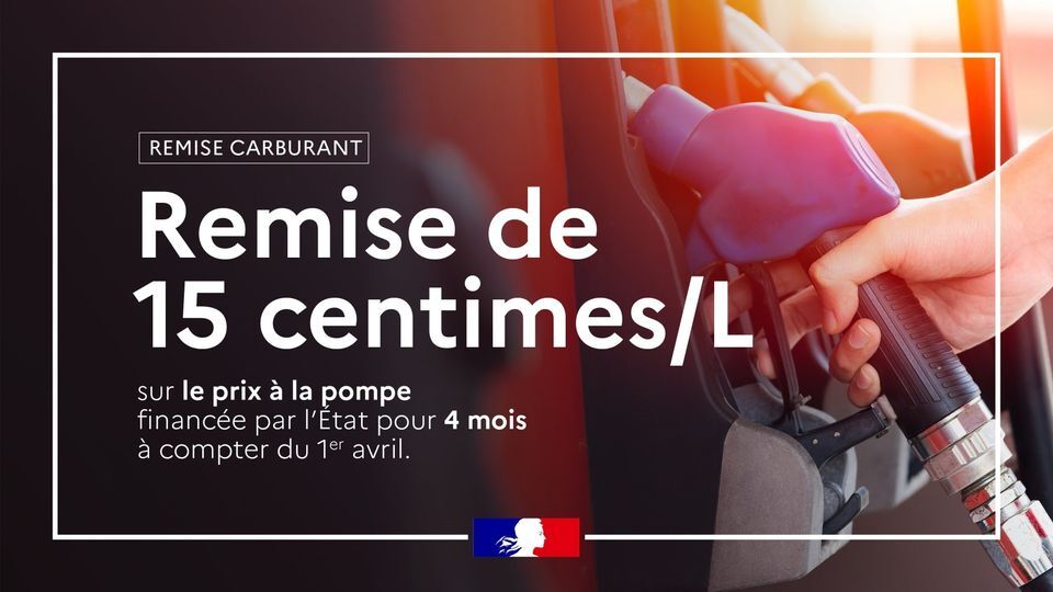 → Une « remise carburant » de 15 centimes/L sera appliquée dès le 1er avril, pour 4 mois.