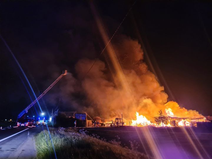 Jaux (Compiègne), feu de stockage de bois, 50 sapeurs-pompiers engagés. RN31 fermée à la circulation.