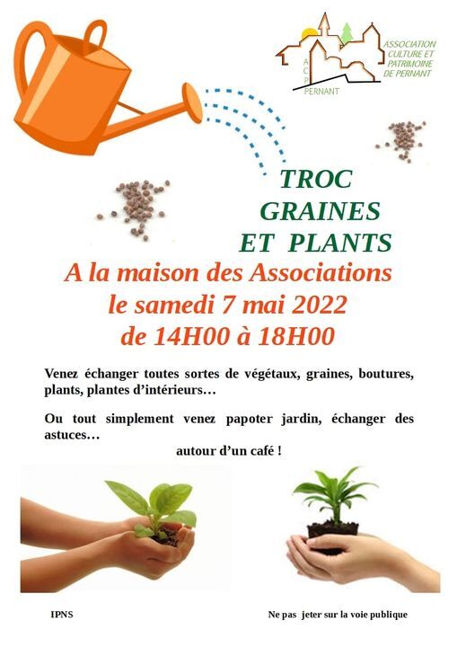 L'ACPPernant vous attends samedi 07 Mai 2022 pour un troc graines/plantes à la Maison des Associations.