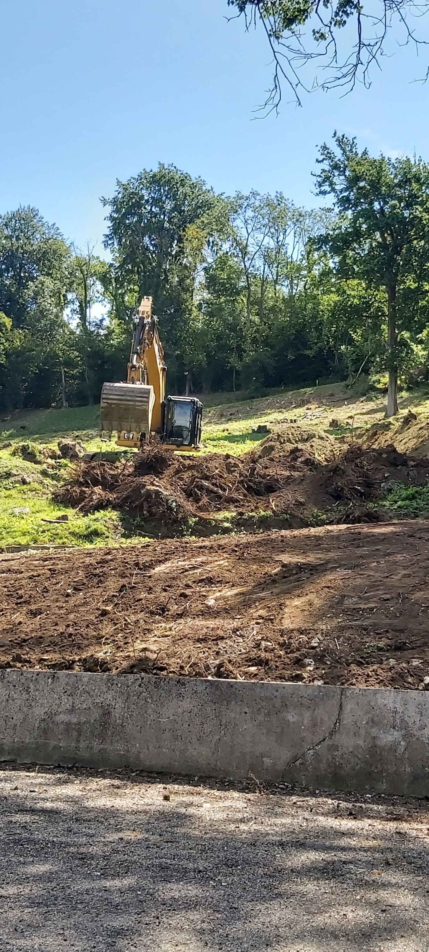 AisneClub Margival Arrivée de la pelle à chenille... Enlèvement des souches au niveau de la Place d'armes...