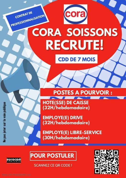 Cora (Soissons) recrute plusieurs postes
