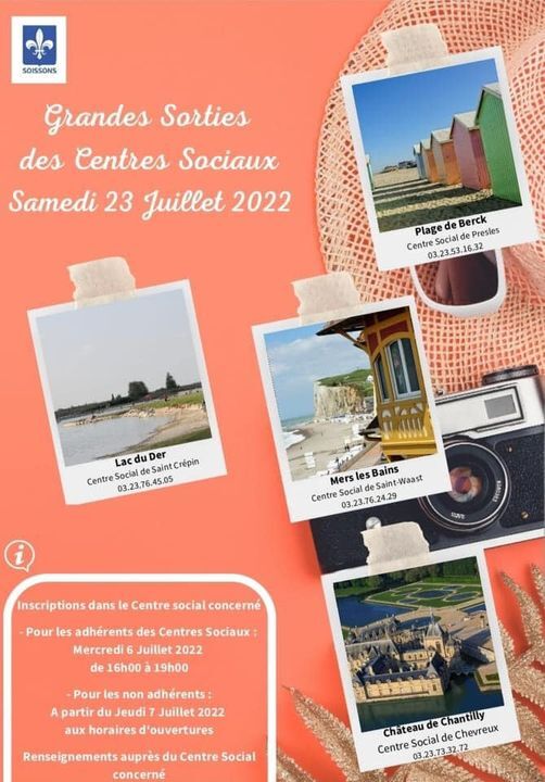 Bonjour à toutes et tous voici les sorties proposées par les centres sociaux de la Ville pour le mois de juillet.