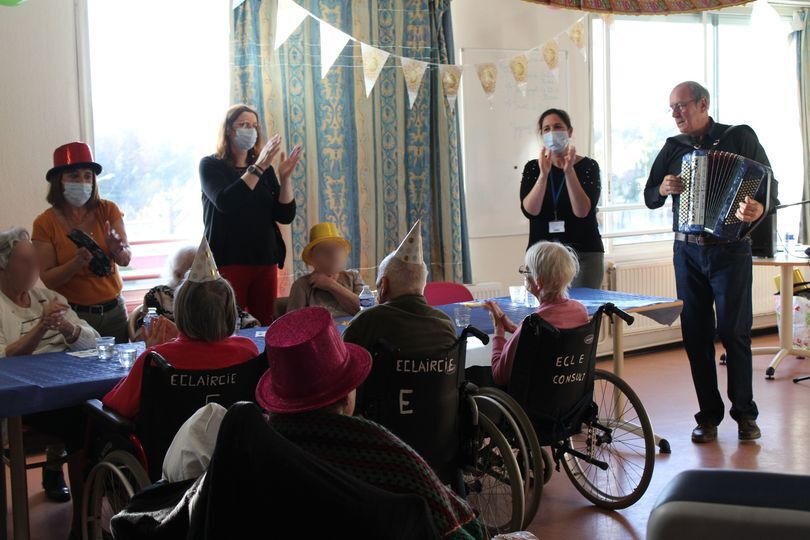 Les résidents de l'EHPAD St Lazare et éclaircie E ont pu bénéficier de la Nouvelle organisation des anniversaires. La confection des gâteaux a eu lieu le matin dans le service grâce au cake factory offert par l'association des VMEH. l'après-midi les résidents ont ensuite dégusté les gâteaux qu'ils ont préparé et tous ont profité du son de l'accordéon grâce à Alain Boucly bénévole de l'association qui est passé dans chaque chambre pour le plus grand bonheur de tous.