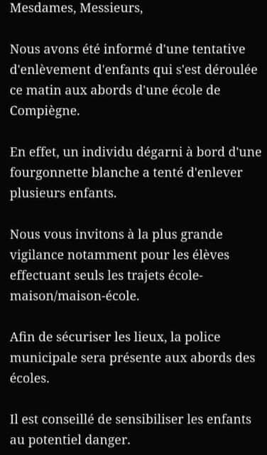 Tentative d'enlèvement d'enfants ce matin à Compiègne