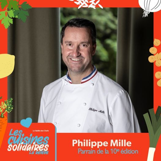 Pour ce dixième anniversaire de notre programme de sensibilisation à la précarité alimentaire auprès de la nouvelle génération de cuisiniers et de chefs, nous avons le plaisir d’accueillir Philippe Mille qui accompagnera les 1600 apprenants des 60 établissements mobilisés partout en France dans la production des 12 000 repas à destination des bénéficiaires de l’aide alimentaire.