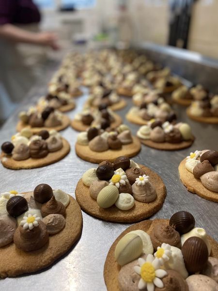 La Pomme d'Or Victorine a préparé sa tartelette de Pâques pour régaler nos clients du week-end. Un sablé breton, aux trois chocolats