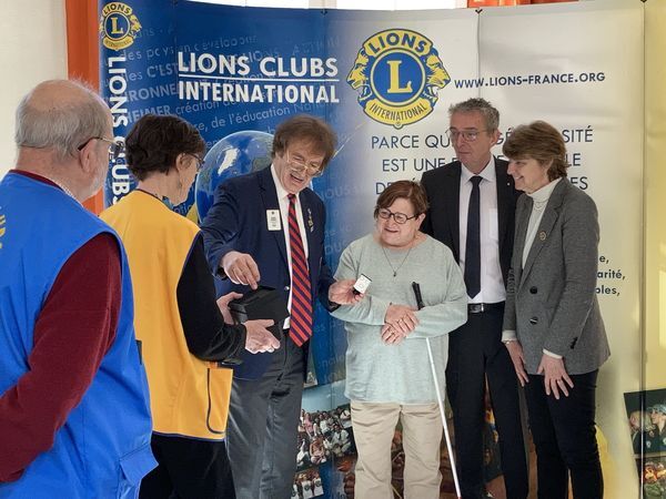 Patrice Hulbaut, gouverneur du Lions Club des Hauts de France, Jean-Pierre Gernez, président du Lions Club de Villers-Cotterêts et la présidente de celui de Laon se sont unis pour trouver le financement nécessaire à l’acquisition de cette canne connectée.
