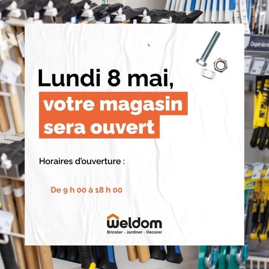 Weldom Soissons (Soissons) OUVERTURE EXCEPTIONNELLE le lundi 8 mai de 9 h 00 à 18 h 00.