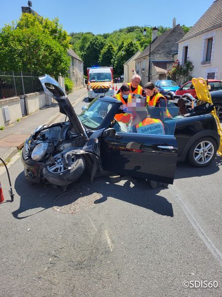 Accident secteur Verberie ce midi, les pompiers prennent en charge un blessé