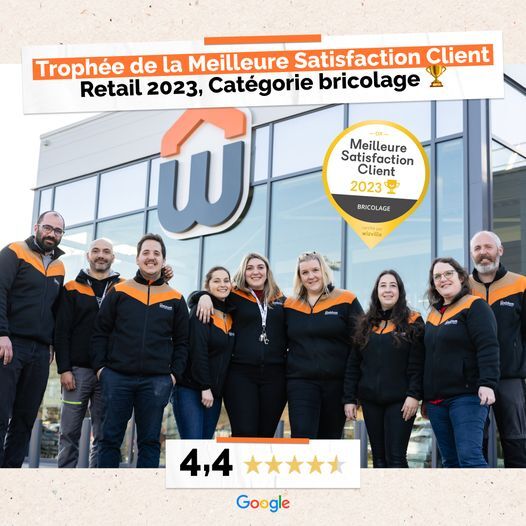 Votre magasin weldom de Soissons décroche la première place du Prix de la Meilleure Satisfaction Client Retail 2023* dans la catégorie Bricolage